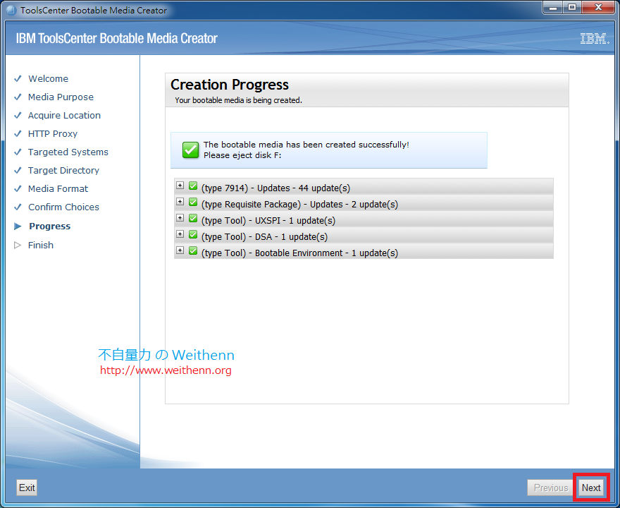 1. 首先至 IBM 網站,下載 IBM Bootable Media Creator (BOMC) Firmware 更新工具,此次實作點選「Microsoft Windows v9.51」項目,便會下載執行檔 ibm_utl_bomc_9.51_windows_i386.exe。